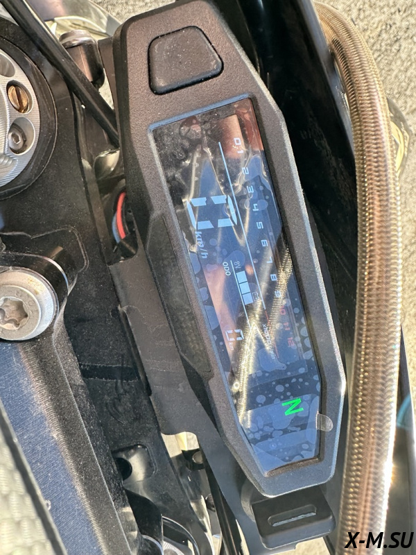 Головная фара с пятью светодиодными линзами светит очень ярко и позволяет продолжить покатушки, либо просто вернуться домой в темное время суток. Приборная панель ЖК отображает всю текущую информацию о состоянии мотоцикла. Вся электроника имеет влагозащищенные разъемы, которые абсолютно исключают попадание воды и образование коррозии! Питает электронику аккумулятор, Li-ion, общим весом 200 грамм!!!
