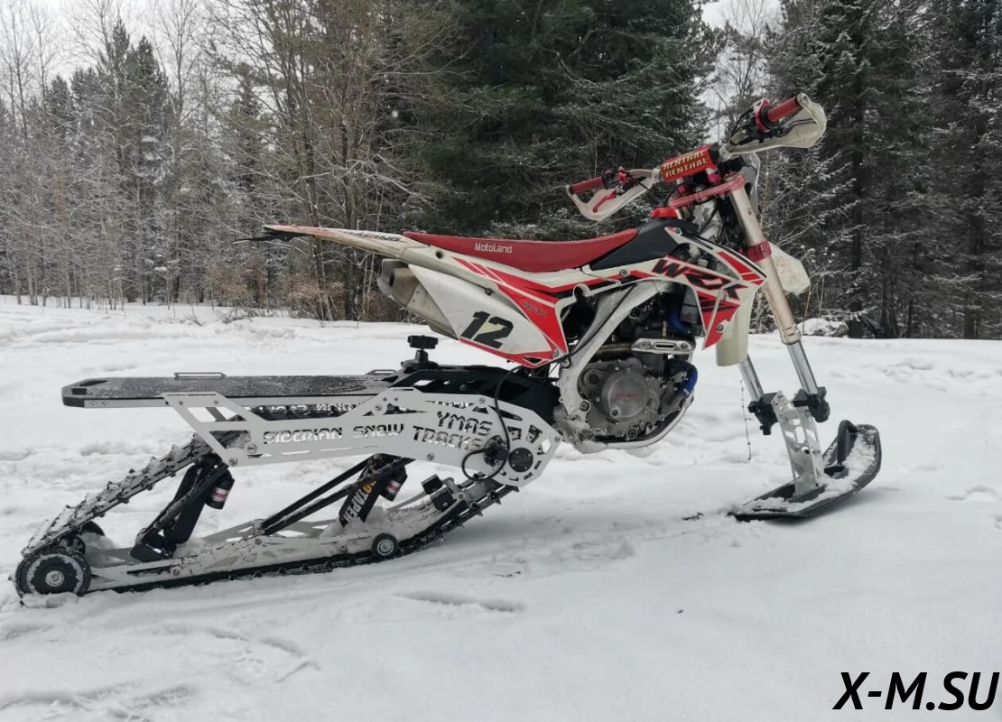 SiberianSnow от YmasTracks — универсальный гусеничный комплект для внедорожных мотоциклов. Гусеничный мотоцикл (СНОУБАЙК) это, по сути, одноколейный снегоход. Вы получаете возможность продлить мото сезон и эксплуатировать мотоцикл не только летом но и зимой.